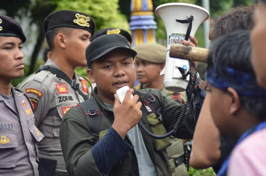 Aksi yang dikawal ketat aparat keamanan itu berlangsung tertib. Massa aksi kemudian diterima Pimpinan dan Badan Kehormatan DPRD, yaitu Ketua DPRD Sumardi, Wakil Ketua Nazil Fikri dan Dedi Sutardi, Ketua Badan Kehormatan DPRD Dahyat Tunggara dan anggota Jayusman serta Ahmad Supriyadi.
