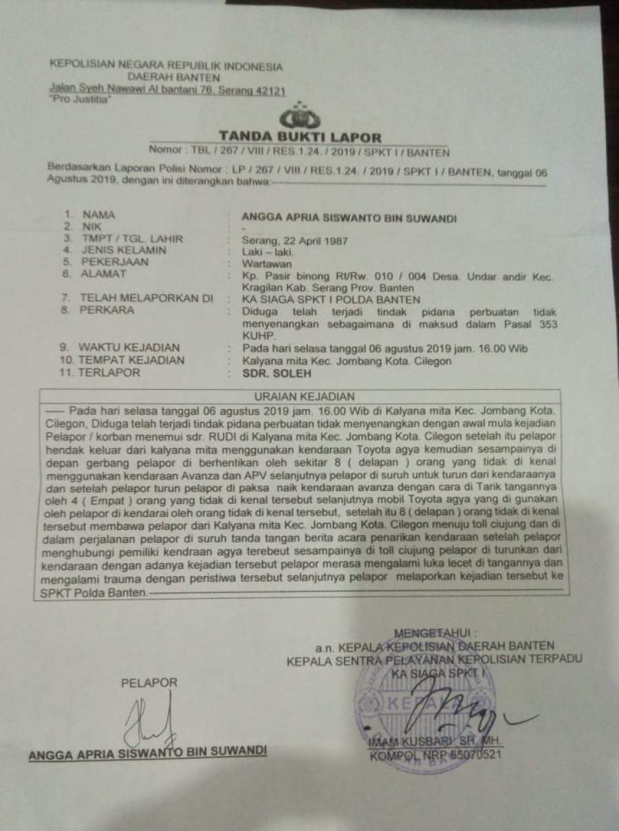 Sementara, menurut Ketua Advokasi Rakyat Untuk Nusantara (ARUN) DPW Banten, Prabu Yopi Rianda SH, menyikapi adanya tentang penarikan kendaraan yang secara perampasan terhadap rekan kami Inisial GA dari media atau pelaku jurnalis, saya anggap di luar dari pada koridor dengan menyalahgunakan aturan yang sudah ditetapkan oleh undang-undang tentang Jaminan Fidusia.