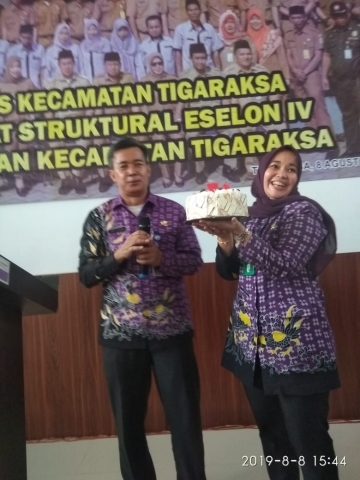 Acara tersebut tambah meriah karena ada kejutan dari para staf Kecamatan Tigaraksa untuk Bapak Yayat Rohiman yang berulang tahun ke-47 tepat pada tanggal 8 Agustus 2019.