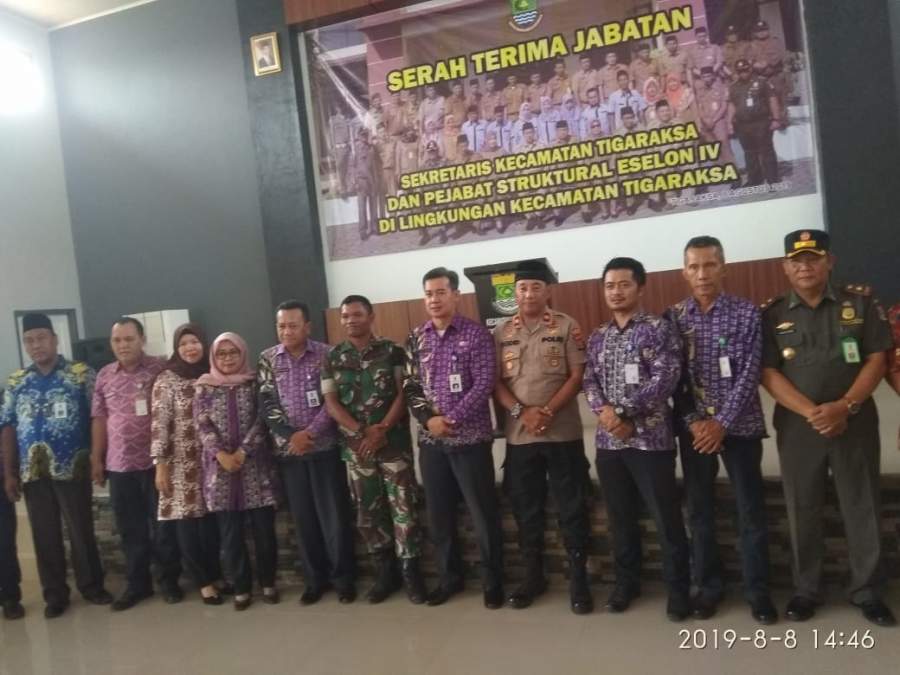 Hadir dalam acara tersebut Camat Tigaraksa yang lama Yayat Rohiman, Sekcam lama H. Muhamad Jaenudin, Sekcam baru Hendarto, Kapolsek lama Dodit Prasetiyo, Lurah Kadua Agung Eman Sulaeman, Satpol PP Tigaraksa dan Staf Kecamatan Tigaraksa.