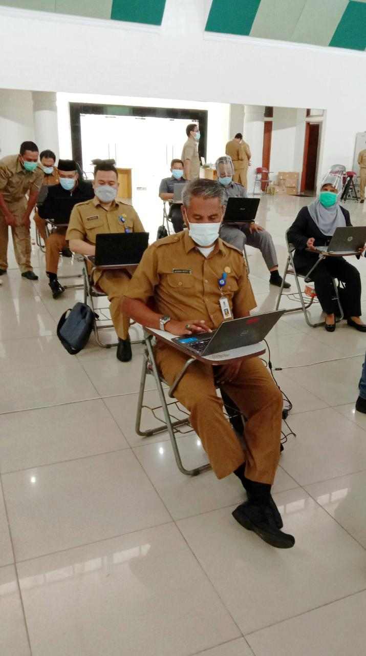 Lanjutnya, Acara tersebut dibagi 3 sesi dalam 4 hari dengan mengikuti standar protokol kesehatan Covid 19, peserta tes yang terdiri dari PNS organisasi perangkat daerah (OPD) dan Kecamatan diwajibkan memakai masker dan face shield.