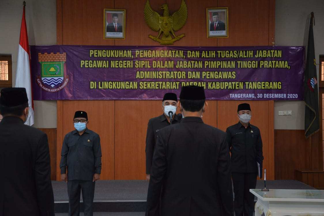 "Kami melakukan pelantikan dan pengukuhan para pejabat di lingkup Setda Kabupaten Tangerang sesuai dengan peraturan perundang-undangan yang berlaku karena ini merupakan perubahan SOTK jadi perlu dilakukan pengukuhan atau pelantikan ulang," katanya.