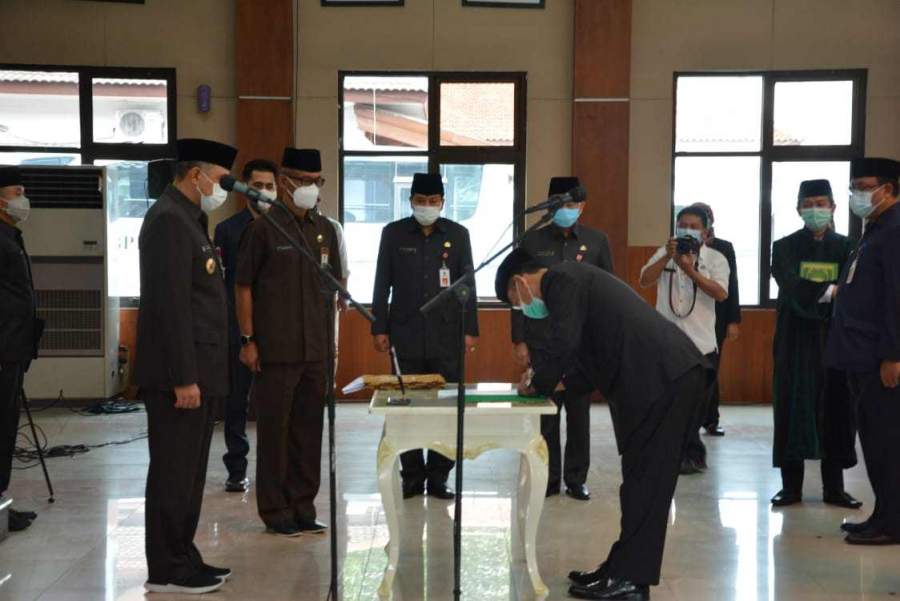 Adapun para pejabat yang dilantik dan dikukuhkan dalam pelantikan tersebut di antaranya, Heri Heryanto selaku Asisten Pemerintahan dan Kesejahteraan Rakyat, Yusuf Herawan Asisten Ekonomi Pembangunan, H. Yani Sutisna selaku Asisten Administrasi Umum, Rudi Lesmana selaku Kabag Protokol dan Komunikasi Pimpinan, Dawud Prasetyo Kasubag Dokumentasi Pimpinan, dan Anita Suniati Kasubag Komunikasi Pimpinan. (IKP/Mad Sutisna)