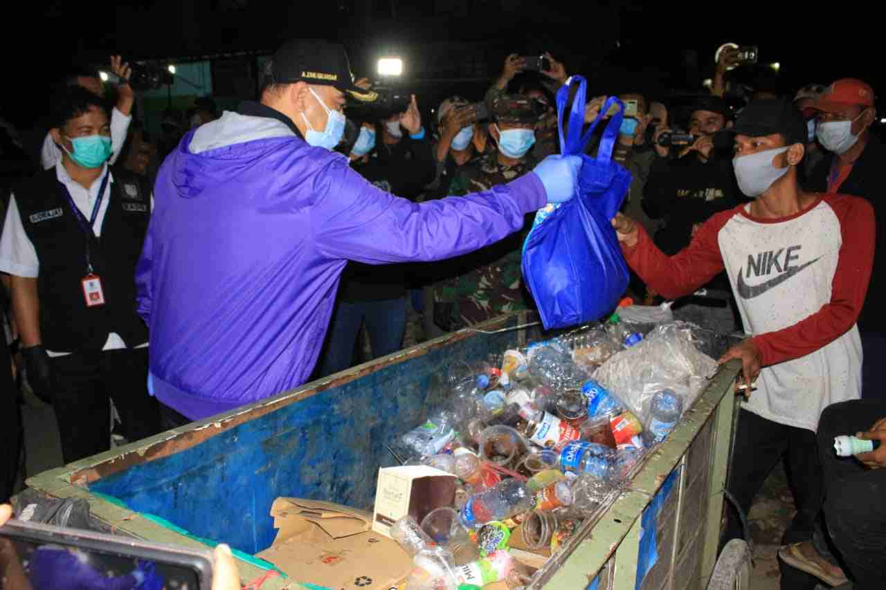 Pada saat giat monitoring ini, 500 paket bantuan dari Polres dan 300 paket bantuan dari pemda, total 800 paket bantuan diserahkan oleh Bupati, Dandim, Kapolres dan Kajari kepada para pedagang di Kecamatan Pasarkemis.