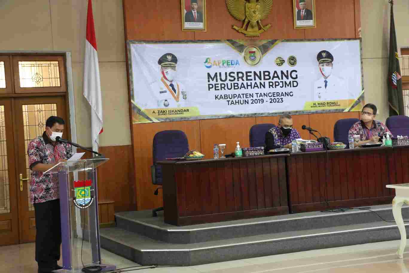 Dalam sambutan pembukaannya, Bupati Zaki mengatakan, berdasarkan hasil evaluasi terhadap RPJMD Kabupaten Tangerang Tahun 2019-2023 bahwa akibat dari refocusing dan realokasi anggaran untuk penanganan pandemi Covid-19 pada tahun 2020, terdapat beberapa target kinerja yang harus disesuaikan.