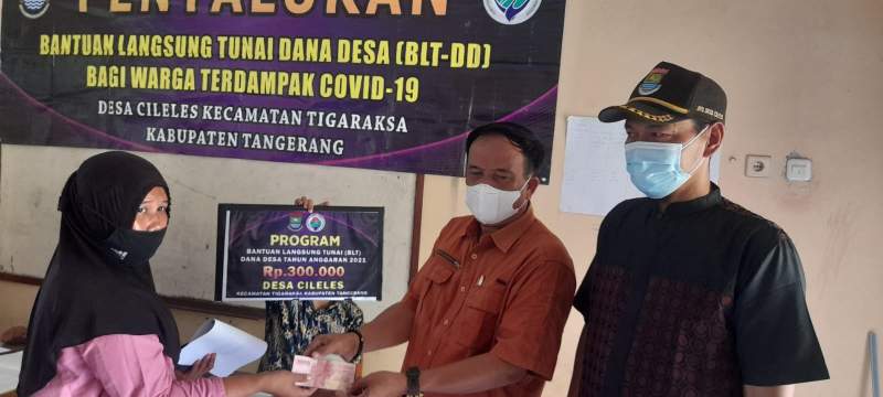 TANGERANG – Pemerintahan Desa Cileles Kecamatan Tigaraksa menyalurkan jatah Bantuan Langsung Tunai (BLT DD) kepada 108 orang warga terdampak Covid 19. Satu warga mendapat Rp900 ribu untuk bulan Oktober, November dan Desember 2021.