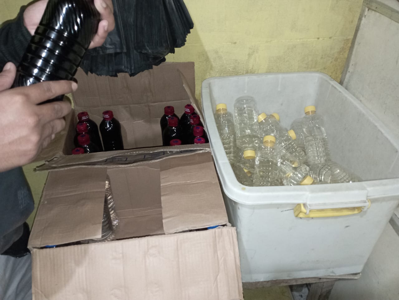 Ketika melakukan penyisiran, petugas berhasil menemukan puluhan kardus minuman keras yang disimpan di dalam kamar, di sebuah toko jamu.