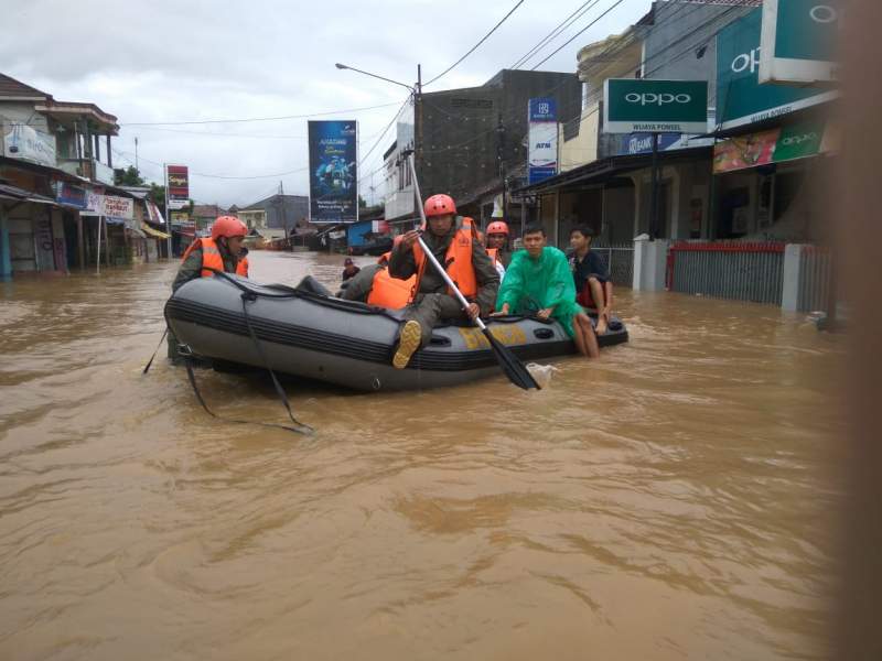 Kapolda Banten Irjen Pol Drs Tomsi Tohir M.Si melalui Dansat Brimob Kombes Pol Reeza Herasbudi SIK MM mengatakan kepada awak media, ada beberapa personel Satbrimob Polda Banten diturunkan lansung untuk mengevakuasi korban bencana banjir.