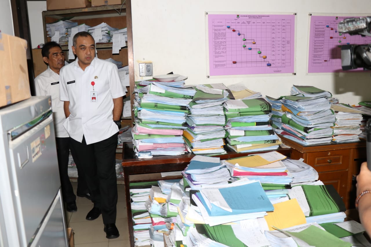 Sekitar pukul 08.30 Wib, Bupati Zaki Iskandar datang ke Dinas Kependudukan dan Catatan Sipil, pelayanan terus berjalan dengan suara panggilan antrian dipelayanan KTP, dan Bupati langsung menyusuri ruangan demi ruangan tumpukan berkas arsip administrasi kependudukan bertumpuk karena keterbatasan ruangan.