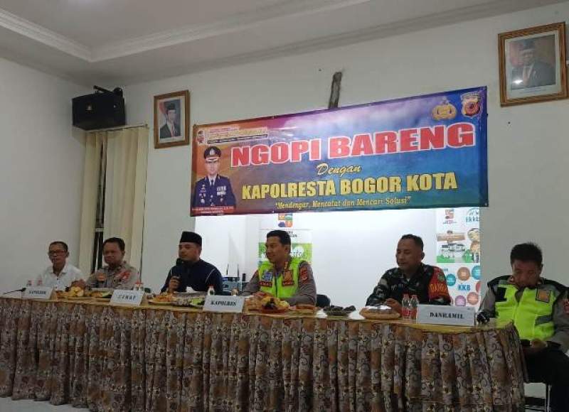 Program Ngopi Bareng Kapolresta Bogor Kota sudah mulai diadakan sejak Januari 2023 lalu. Kali ini, orang nomor satu di Polresta Bogor Kota, Polda Jabar tersebut, ngopi bareng dengan tokoh agama (Toga), tokoh masyarakat (Tomas), tokoh daerah (Toda), Ketua RT, Ketua RW dan warga Tanah Baru Bogor Utara.