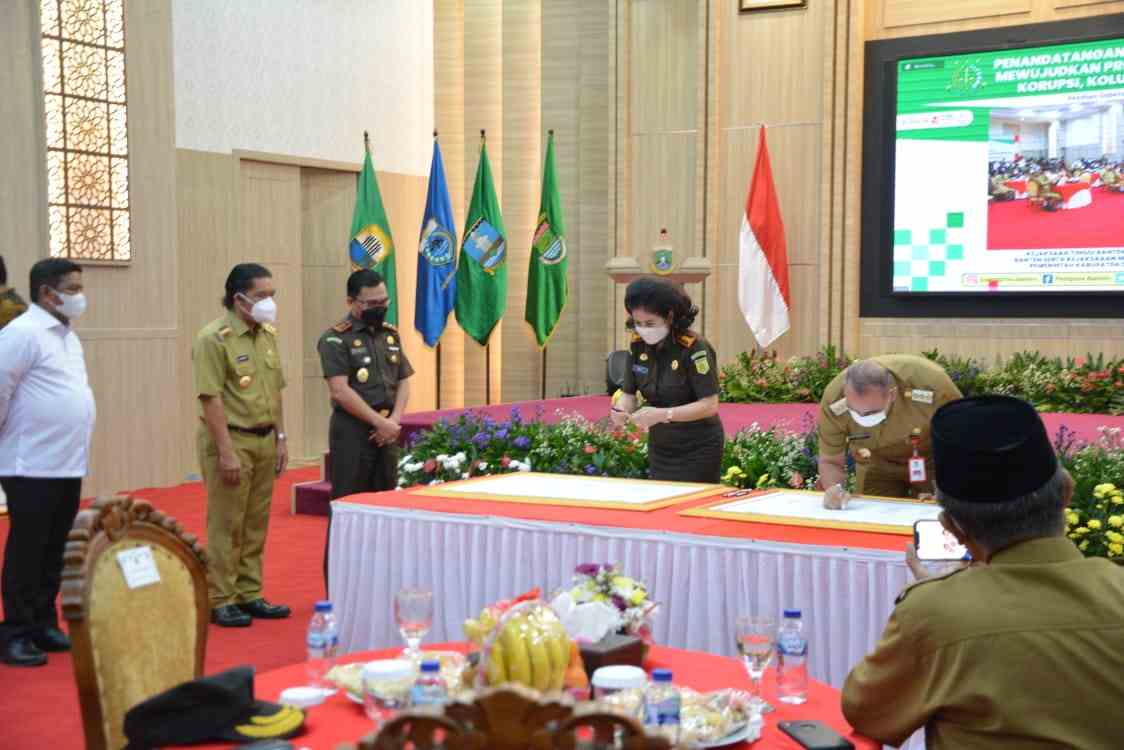 Penandatanganan pakta integritas tersebut digelar di Aula Pendopo Gubernur KP3B Propinsi Banten dan secara serempak juga dilakukan antara Kejaksaan Tinggi Banten dengan Pemerintah Provinsi Banten serta Kejaksaan Negeri se-Banten dengan Pemerintah kabupaten/kota se-Provinsi Banten.