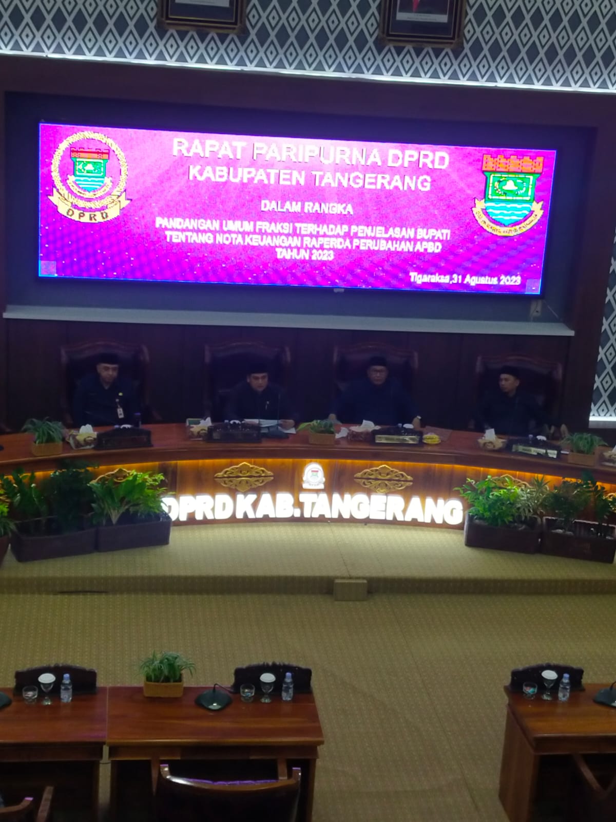 Rapat paripurna DPRD Kabupaten Tangerang, dipimpin wakil ketua DPRD, astayudin fraksi partai Gerindra, ilhm chair fraksi partai Golkar, Aditya Wijaya fraksi partai Demokrat, bupati Tangerang A. Zaki Iskandar.