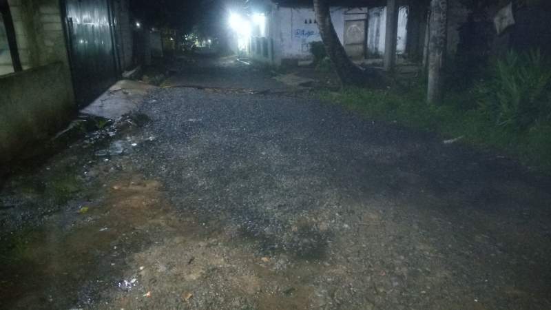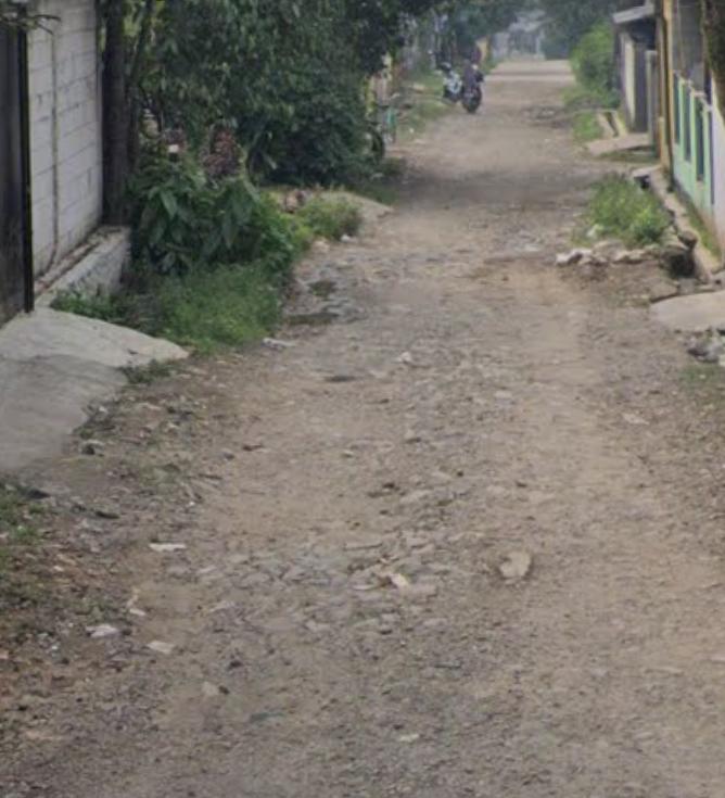 Melalui beberapa warga berinisiatif menyumbangkan batu kerikil untuk penimbunan badan jalan karena kerap menjadi kubangan air dan sangat licin saat turun hujan.