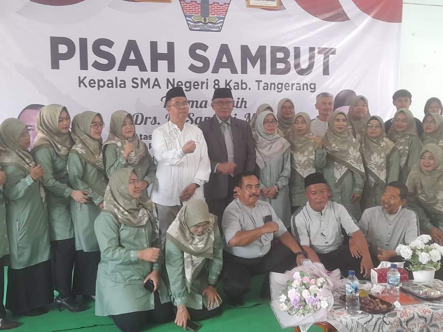 Sementara Kepala KCD Provinsi Banten Cabang Kabupaten Tangerang menyampaikan kepada Kepala SMAN 8 Agus Setyono agar bisa bekerja sama di tempat yang baru, dan sekarang pak Agus jangan pikir pindah agi," ujar KCD berseloroh.