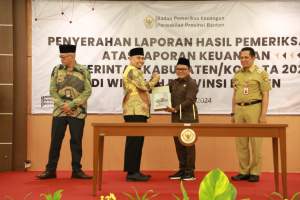 Serang, lensafokus.id -- Pemerintah Kabupaten (Pemkab) Tangerang meraih opini Wajar Tanpa Pengecualian (WTP) yang ke-16 kali secara berturut-turut atas hasil Laporan Hasil Pemeriksaan (LHP) Keuangan Pemerintah Daerah Tahun Anggaran 2023 dari Badan Pemeriksaan Keuangan (BPK) RI Perwakilan Propinsi Banten. Penyerahan LHP dengan raihan WTP tersebut diterima langsung oleh Pj Bupati Tangerang Andi Ony yang didampingi Ketua DPRD Kabupaten Tangerang, H. Kholid Ismail di Aula Gedung BPK RI Perwakilan Provinsi Banten. Selasa (14/05/24).