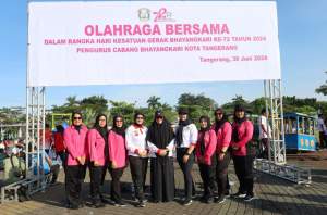 Tangerang, lensafokus.id -- Menyambut Hari Bhayangkara ke-78 yang jatuh pada tanggal 1 Juli 2024, Ketua Bhayangkari Polsek Cisoka beserta anggota mengikuti kegiatan olahraga bersama Alun-alun Pemda kabupaten Tangerang. Minggu (30/06/2024).