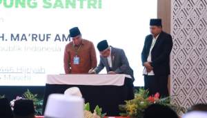 TANGERANG, lensafokus.id -- Penjabat (Pj) Bupati Tangerang Andi Ony menyatakan rasa bangga atas penetapan Kecamatan Kresek sebagai Kampung Santri. Penetapan tersebut ditandai dengan penandatanganan Prasasti Kresek Kampung Santri oleh Wapres Ma'ruf Amin pada acara Gebyar Muharram 1446 H di Aula Syekh Astari Kecamatan Kresek, Kabupaten Tangerang, Provinsi Banten, Minggu (14/07/2024).