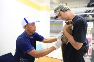 Terlihat, layanan vaksinasi gratis tersebut disambut antusias oleh puluhan masyarakat yang membawa berbagai macam hewan peliharaannya, mulai dari kucing, anjing, kera, sampai musang.