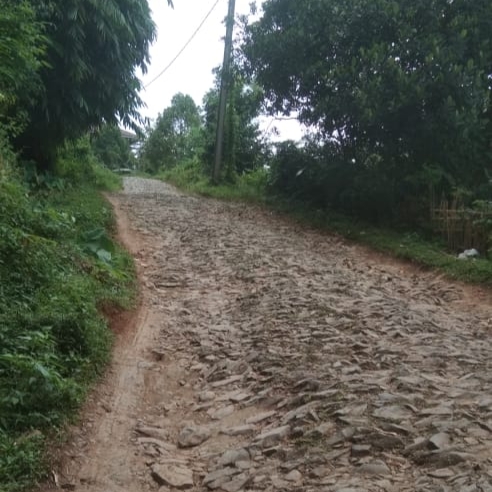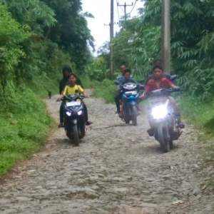 Jalan yang menjadi akses utama warga setempat tersebut, terlihat sangat rusak parah dan berlubang, selain itu batuan besar dan tanah merah dipermukaan jalan sering kali mengakibatkan pengendara roda dua mengalami kecelakaan.