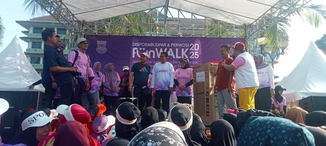 Tangerang, lensafokus.id - Dalam rangka Visi dan Misi RPJMD Kabupaten Tangerang Tahun 2025 – 2029, melalui Program 100 hari kerja Bupati dan Wakil Bupati Tangerang Tahun 2025–2030 Dinas Pemuda Olahraga Kebudayaan dan Pariwisata yang berkolaborasi dengan Persatuan Wanita Olahraga Seluruh Indonesia (PERWOSI) melaksanakan kegiatan Senam Tangerang Gemilang dan Jalan Sehat Bersama Masyarakat Kabupaten Tangerang, yang di selenggarakan di depan Gedung Kantor Bupati Puspemkab Tangerang pada Minggu (11/5/2025).