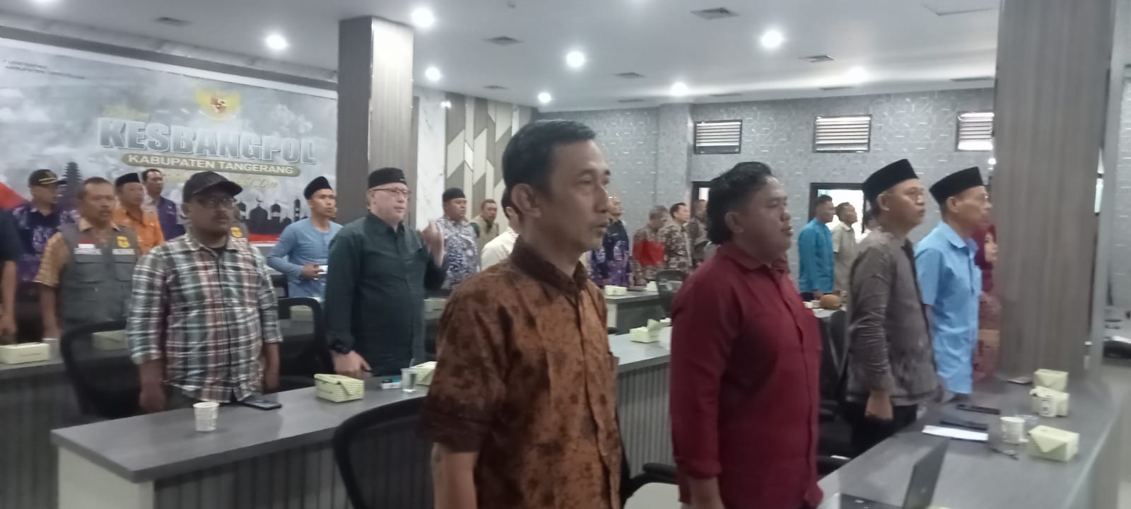 Tangerang, lensafokus.id - Badan Kesatuan Bangsa dan Politik (Kesbangpol) Kabupaten Tangerang menggelar kegiatan peningkatan kapasitas Forum Kewaspadaan Dini Masyarakat (FKDM) dengan tema Optimalisasi Tugas FKDM Kelurahan dan Desa dalam Mendukung Stabilitas Daerah bertujuan untuk meningkatkan kinerja FKDM sebagai upaya kewaspadaan dini di daerah. Acara yang berlangsung di aula lantai III gedung Badan Kesbangpol Kabupaten Tangerang pada Kamis, (15/5/2025).