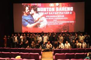 TANGERANG, lensafokus.id -- Polres Metro Tangerang Kota, Polda Metro Jaya menggelar nonton bareng (nobar) Film "Sayap-Sayap Patah 2: Olivia". Film ini mengisahkan perjuangan dan pengorbanan anggota Densus 88 antiteror mengungkap pelaku terorisme hingga berakhir harus kehilangan putri tercintanya yang bernama Olivia berusia 6 tahun.