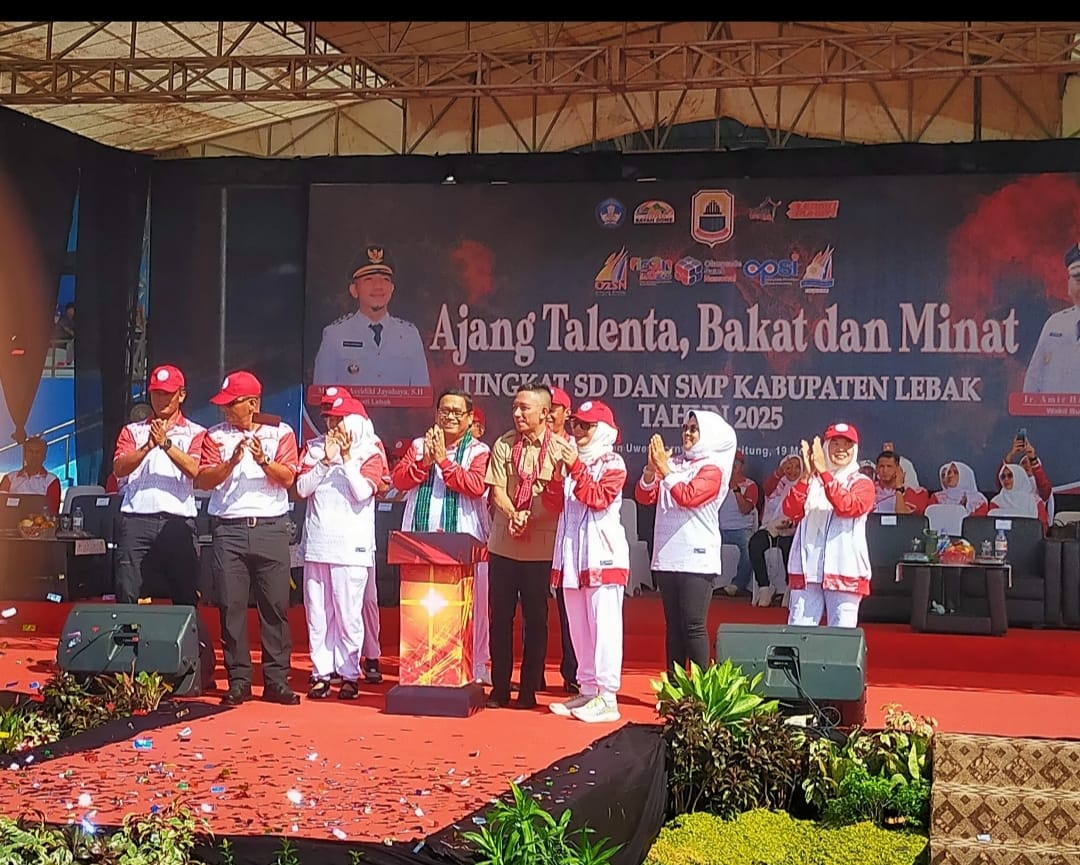 Lebak, lensafokus.id - Pemerintah Kabupaten Lebak menggelar Olimpiade Olahraga Siswa Nasional (O2SN), Festival dan Lomba Seni dan Sastra Siswa Nasional (FLS3N), Olimpiade Sains Nasional (OSN), Gala Siswa Indonesia (GSI) dan Olimpiade Penelitian Siswa Indonesia (OPSI) Tahun 2025 Tingkat Kabupaten Lebak di Stadion Uwes Qorni atau Stadion Ona Rangkasbitung, Senin (19/5/2025).