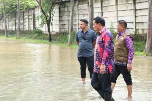 Bupati yang didampingi Kepala Dinas Bina Marga dan Sumber Daya Air serta Kepala Badan Penanggulangan Bencana Daerah (BPBD) Kabupaten Tangerang memantau dan meninjau langsung titik-titik genangan yang muncul pasca hujan deras semalaman.