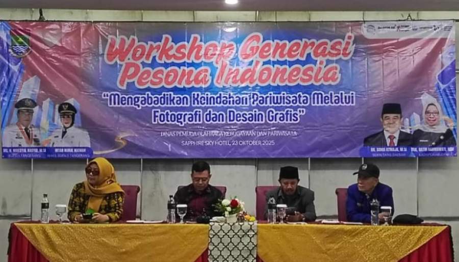 TANGERANG, lensafokus.id — Dalam upaya meningkatkan promosi pariwisata daerah melalui media visual, Dinas Pemuda, Olahraga, Kebudayaan, dan Pariwisata (Disporabudpar) Kabupaten Tangerang bekerja sama dengan Generasi Pesona Indonesia (GenPI) Kabupaten Tangerang menggelar Workshop Fotografi dan Desain Grafis.