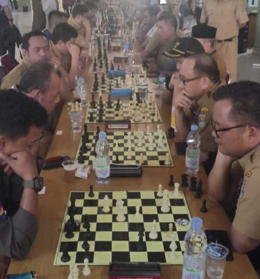 Beberapa dinas yang ikut turnamen catur diantara dari DPMPTSP, Satpol PPN Dishub dan yang lainnya berlangsung di kantor Disporabudpar. Selasa (9/06/2023).