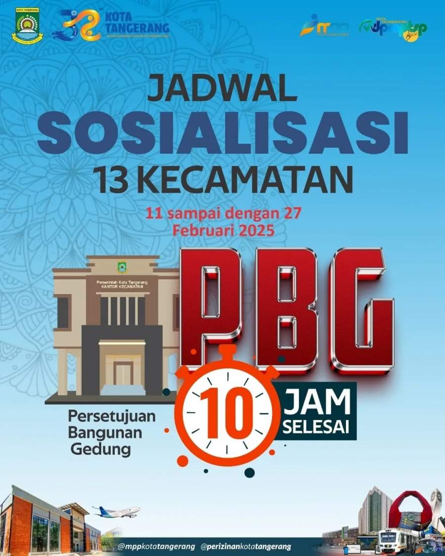 Kepala Dinas Penanaman Modal dan Pelayanan Terpadu Satu Pintu (DPMPTSP) Kota Tangerang Sugihharto Achmad Bagja menuturkan, Pemkot Tangerang menggelar agenda sosialisasi dalam rangka meningkatkan pemahaman masyarakat mengenai kemudahan regulasi dalam mengurus perizinan lewat program PBG 10 Jam di Kota Tangerang. Pemkot Tangerang mengagendakan sosialiasi tersebut digelar mulai 11-27 Februari 2025 mendatang.