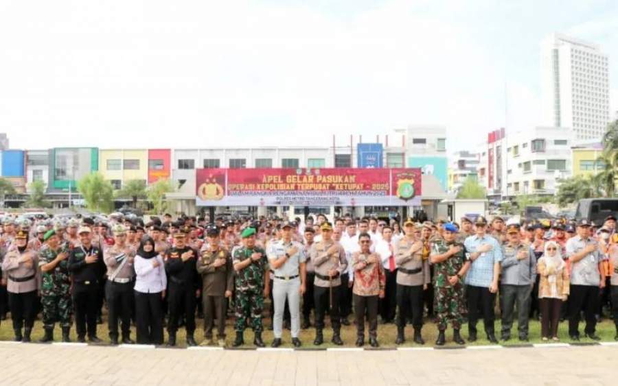 Kota tangerang, lensafokus.id - Pemerintah Kota (Pemkot) Tangerang menyiagakan ratusan personel untuk mengamankan mudik lebaran 1446 H. Personel yang terdiri dari kepolisian, TNI, Satpol PP, Dinas Perhubungan dan Dinas Kesehatan tersebut melakukan apel gabungan di Lapangan Polres Metro Tangerang Kota, Kamis (20/3/25).