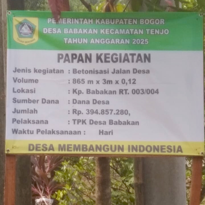 Bogor, lensafokus.id - Pemerintah Desa (Pemdes) Babakan, Kecamatan Tenjo, Kabupaten Bogor, merealisasikan pembangunan infrastruktur yang dibiayai melalui Dana Desa (DD) tahap I Tahun Anggaran 2025. Proyek pembangunan ini untuk dua jenis kegiatan, yaitu sarana jalan dan perbaikan sumur alam.